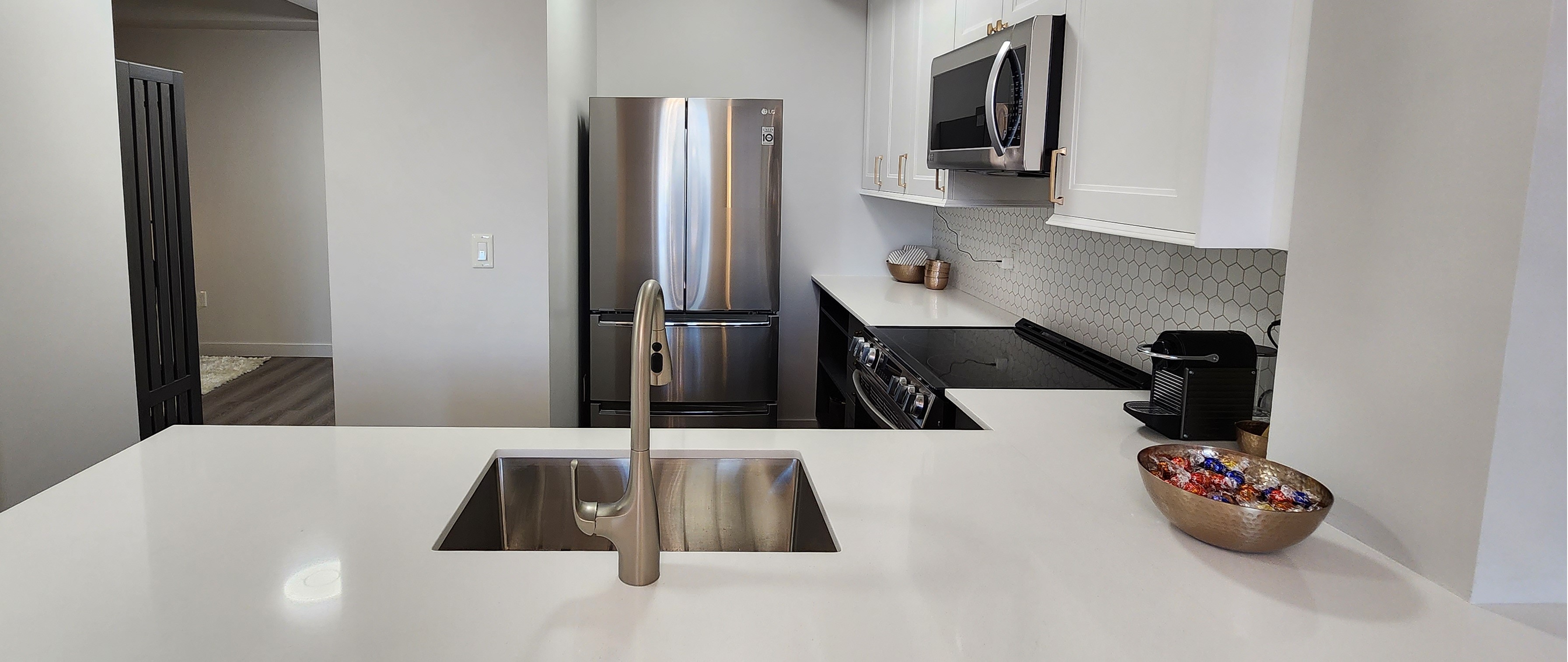 You are not happy with your kitchen and bathroom countertops and want something modern and new. Give us a call and our designer experts will visit your site, and based on your needs will offer design solutions. After you are happy with the one, they will assist you in supply and installation of countertops and manage the project to the end. For only $250 you get professional design, selection of material and contractor.